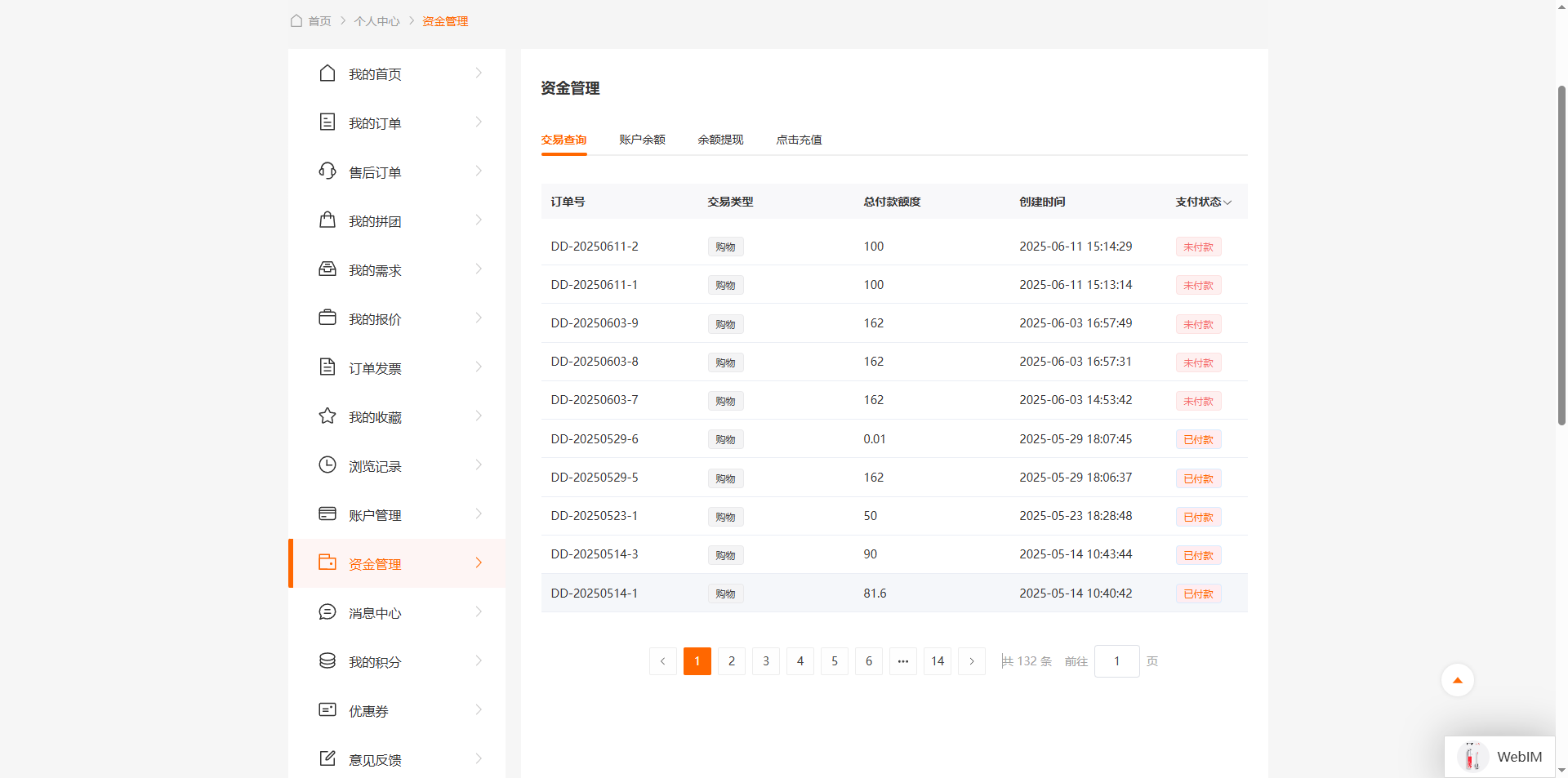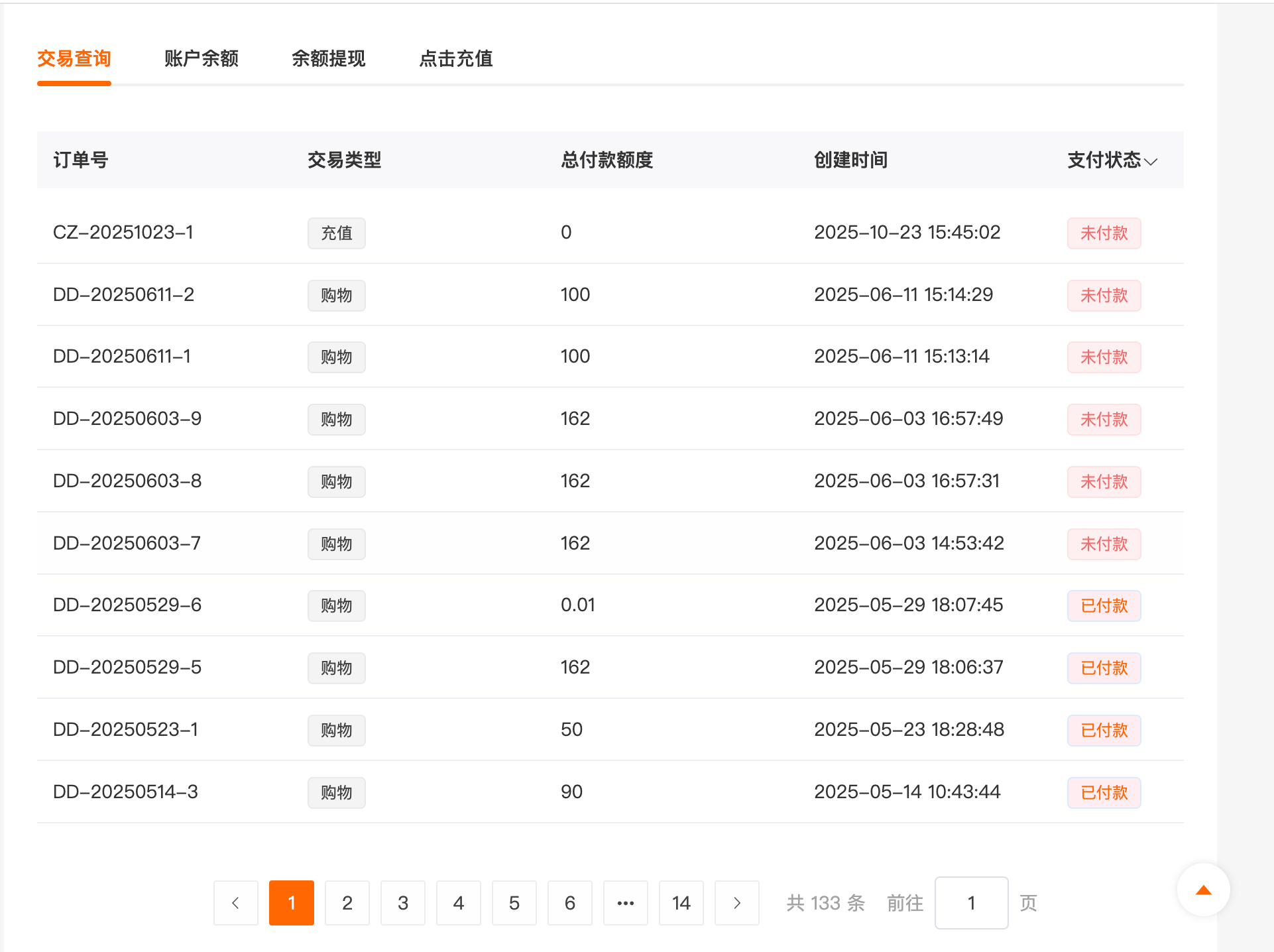 交易查询:所有的订单列表