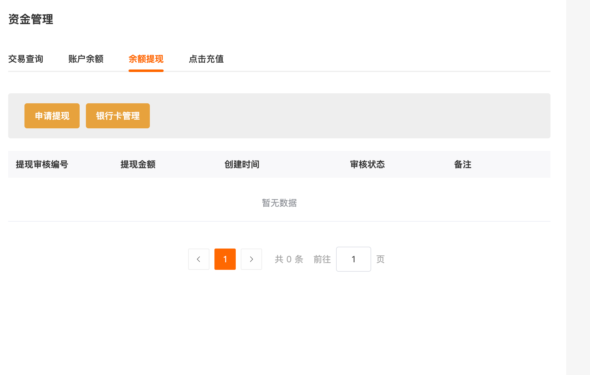 余额提现:提现操作和银行卡管理,提现记录列表