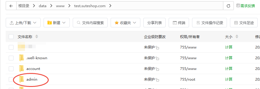 上传到创建的站点目录:演示路径:/data/www/test.suteshop.com/