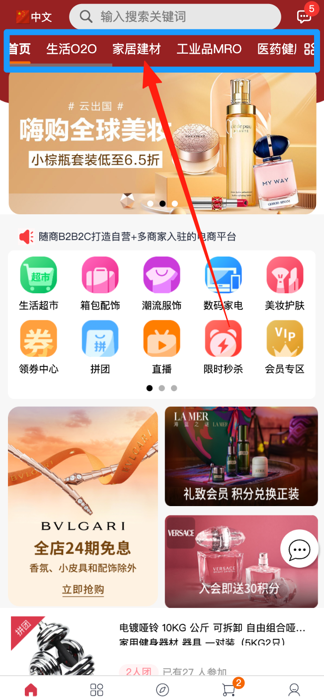 移动首页分类展示在如图所示位置