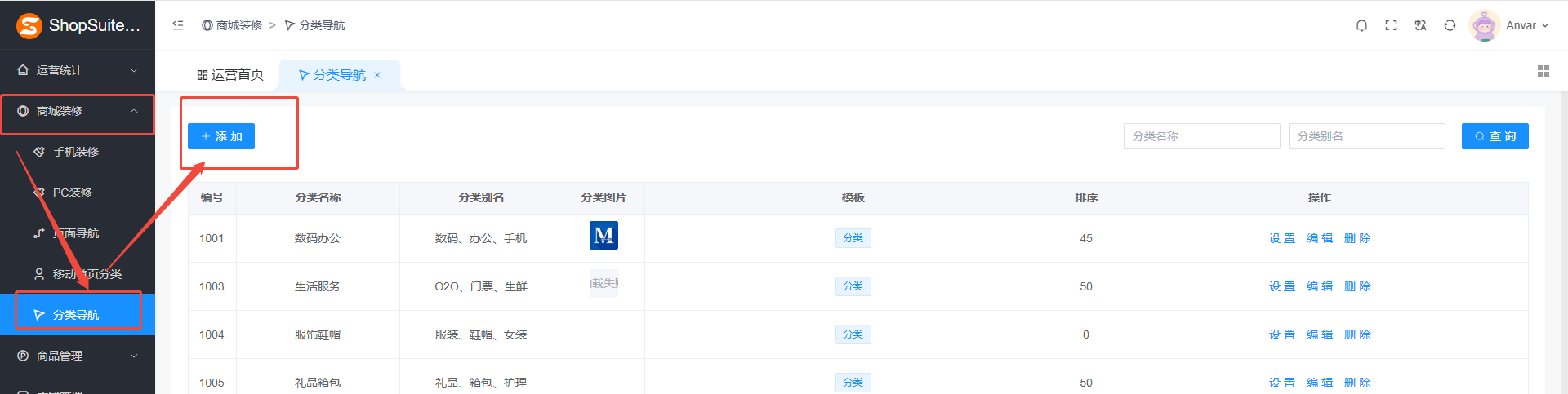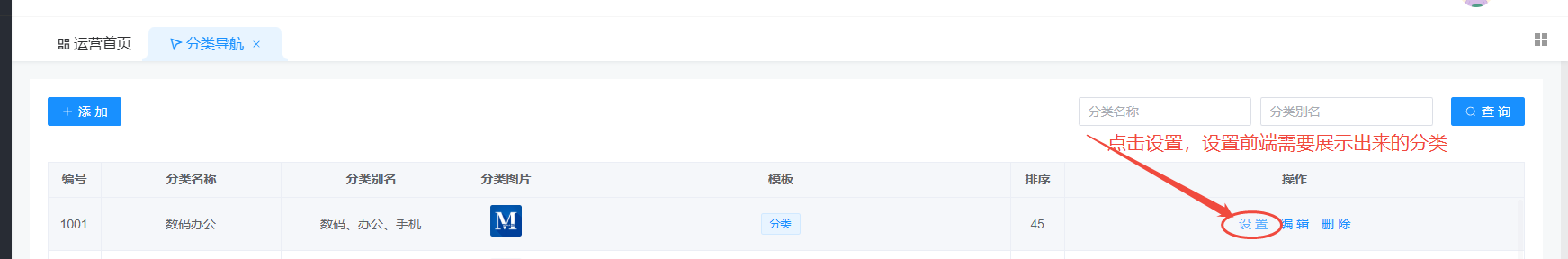 1. 首页显示的一级导航添加,关联 [商品管理–分类管理] 使用