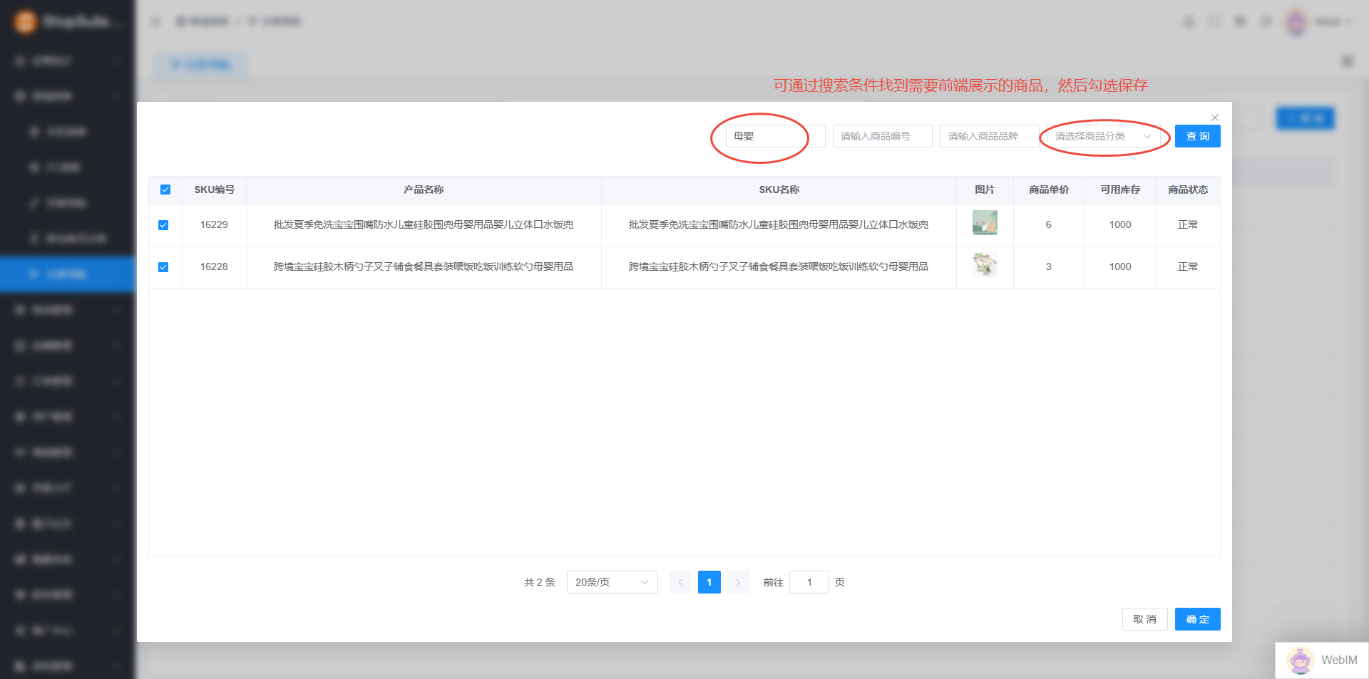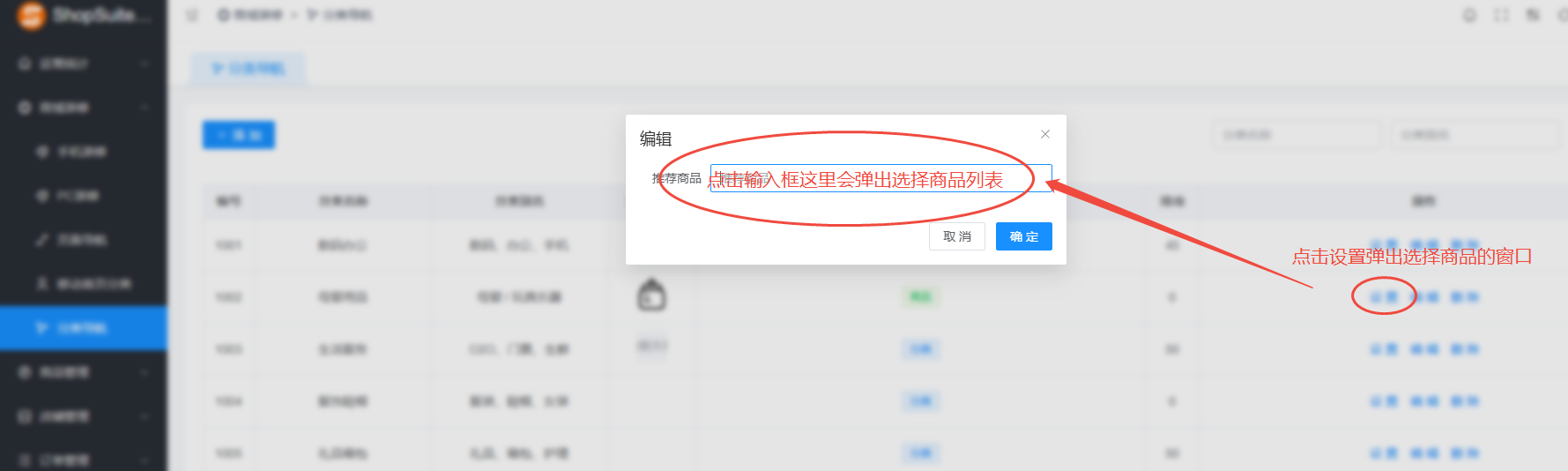 注意:商品管理 —> 分类管理 处必须添加到三级分类,这里才能设置。如果使用商品模板,则需要发布商品之后才能设置。