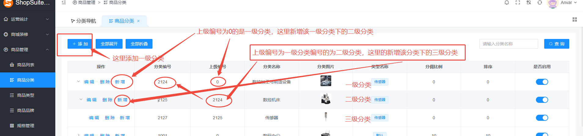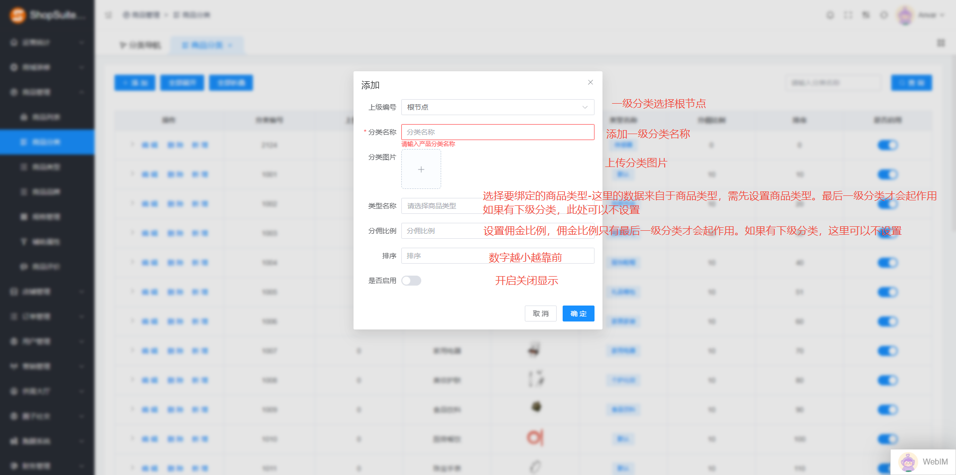 注意:添加的佣金比例只有最后一级分类才有效。