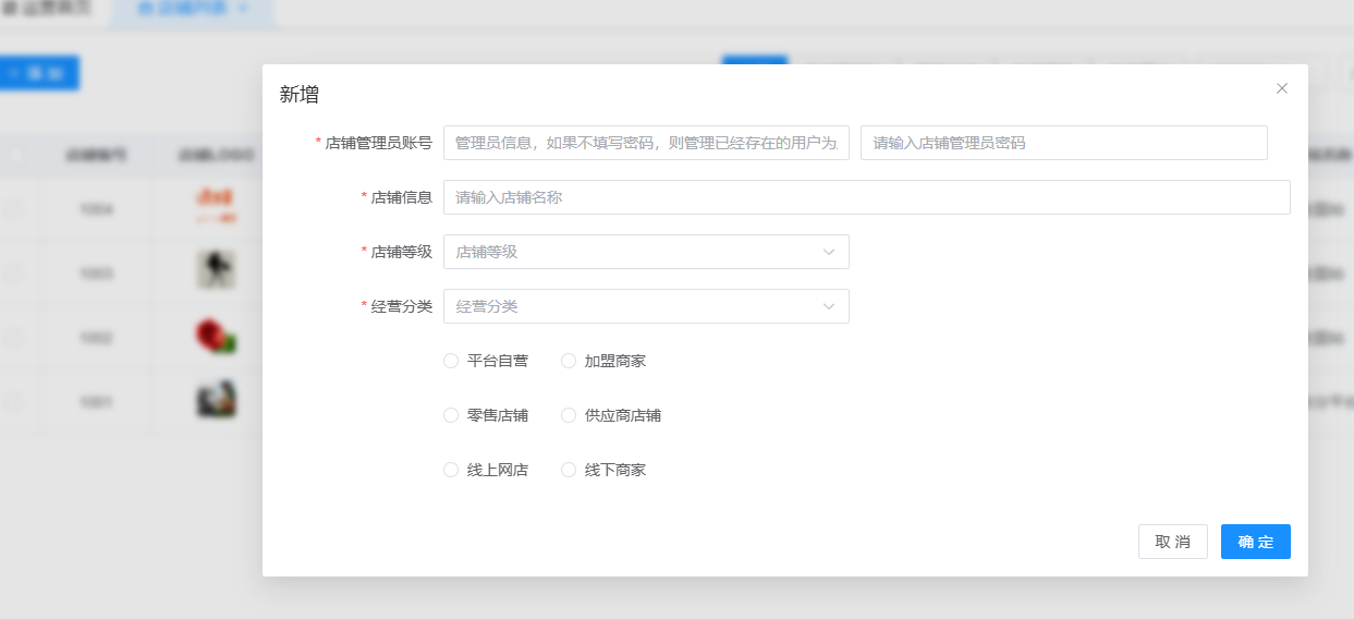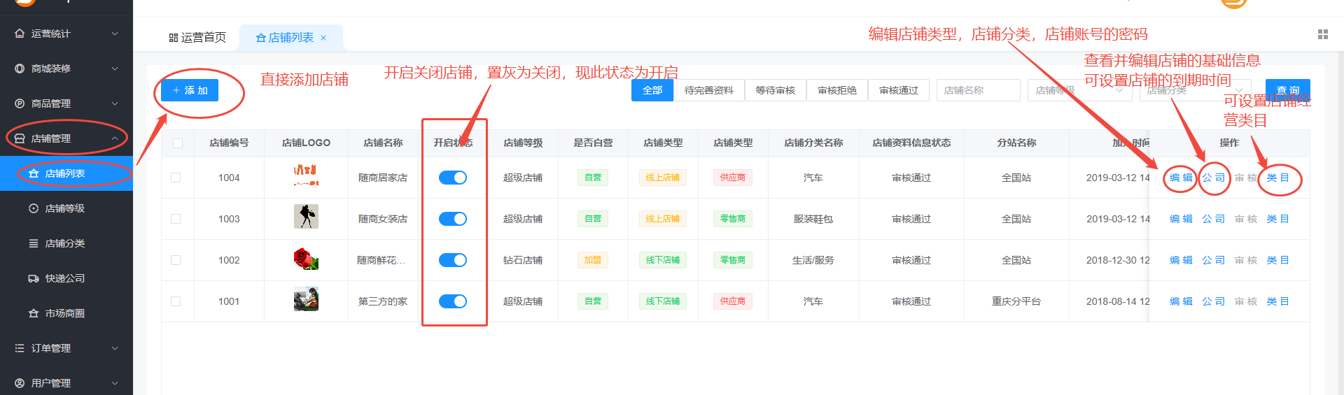 需要店铺账号,店铺密码,店铺名称,设置店铺等级 经营分类 设置是否平台自营