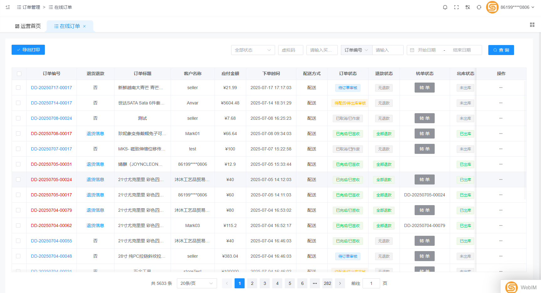 可以看到平台所有的订单,点击订单号可以查看订单详情