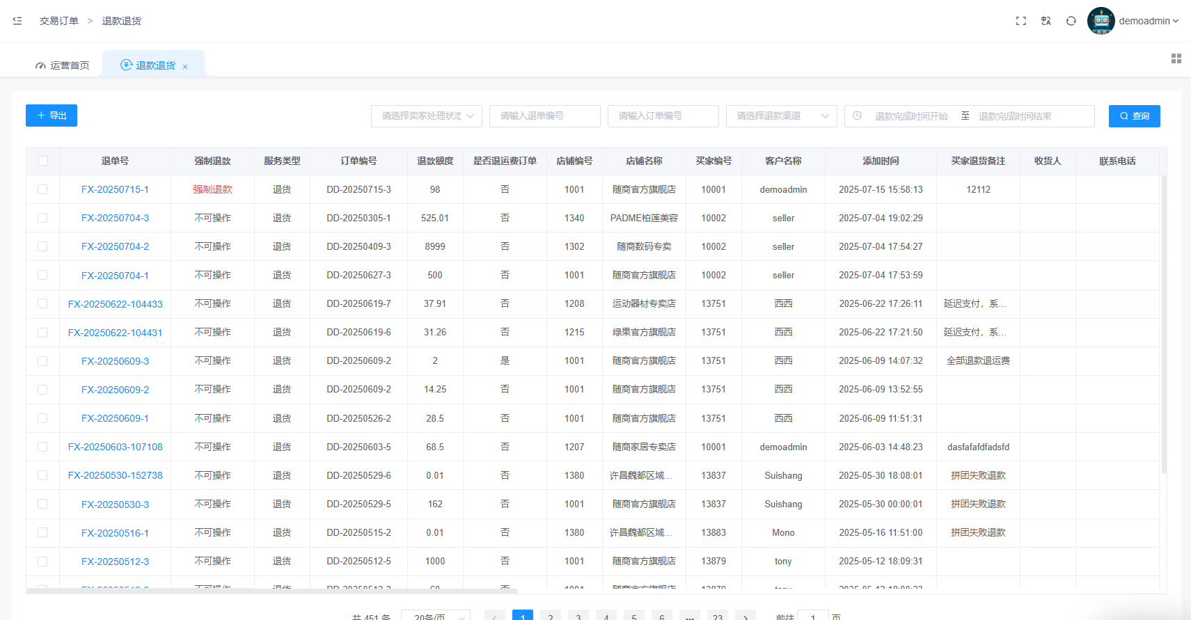 在这里可以看到所有的退款退货的订单记录。