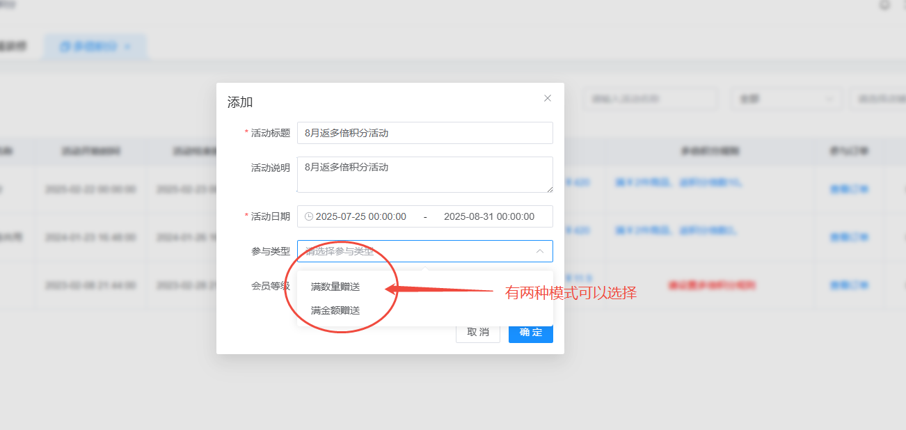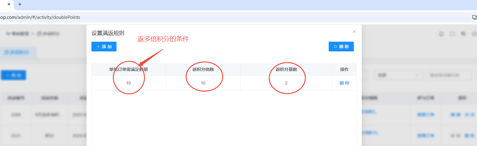1:达到要求返积分总额=积分基数 x 积分倍数 + 平台设置的赠送比例