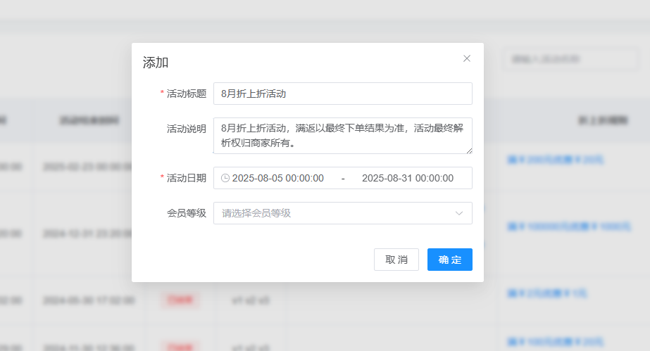折上折是在其他活动的基础上再进行优惠的活动,可以叠加其他活动使用。如果所选的商品没有参与其他活动,仅是设置的规则中的活动