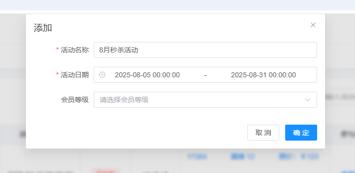目录 搜索 第一章 前言授权协议免费技术支持商业技术支持第二章 系统安装运行环境要求安装php运行环境安装phpStudy使用宝塔集成环境安装安装SuteShop商城系统解压到网站根目录打开商城系统安装地址安装成功发布管理后台访问SuteShop商城系统第三章 系统平台管理中心运营统计运营首页用户统计店铺统计商品统计订单统计退单统计交易统计商城装修手机装修PC装修页面导航移动首页分类分类导航商品管理商品列表商品分类商品类型商品品牌规格管理辅助属性商品评价店铺管理店铺列表店铺等级店铺分类快递公司市场商圈订单管理在线订单咨询管理售后服务订单评价用户管理用户管理表单数据升级日志会员等级用户标签用户消息用户反馈营销管理单件折优惠券大转盘/砸金蛋拼团砍价加价购秒杀(限时折扣)折上折多件折A+B组合平台秒杀满减满返满即送多倍积分供需大厅采购大厅圈子社交板块管理用户帖子用户评论跑腿系统跑腿设置骑手管理跑腿订单财务管理积分记录发票管理支付渠道提现审核支付会员收支明细充值记录充值卡管理银行卡管理交易订单直播设置直播配置直播商品主播申请推广中心推广员推广订单佣金提现咨询管理文章分类文章管理标签管理文章评论国际化翻译设置货币汇率翻译制作语言系统商城设置站点设置上传设置终端设置接口设置通知设置社交设置IM设置SEO设置财务设置安全设置运营设置推广设置协议设置过滤词汇短信配置保障服务消息模版微信设置反馈类型反馈分类系统管理素材管理地区管理计划任务服务配置清理缓存角色管理系统用户操作日志错误日志第四章 商家管理中心运营统计运营首页商品统计交易统计商品管理添加商品商品列表翻译制作素材管理商品品牌标签管理商品咨询商品评价订单管理在线订单发票管理售后服务订单评价资金管理提现审核我要提现我的账户营销管理单件折优惠券大转盘/砸金蛋平台秒杀多倍积分拼团砍价满返加价购满即送满减折上折多件折秒杀(限时折扣)A+B组合直播设置主播申请直播商品批发市场我要分销店铺设置店铺配置店铺分类消费者保障服务店铺装修基础设置基础资料公司信息部门与员工辅助资料物流管理发货地址物流工具系统设置订单流程第五章 买家中心订单中心我的订单商品评价关注中心商品收藏店铺收藏我的足迹个人中心个人信息账号安全绑定授权收货地址客户服务退款退货商品咨询财产中心账户余额我的优惠券我的积分第六章 支付中心设置支付密码交易查询账户余额余额提现第七章 会员注册第八章 商家入驻第九章 门店管理中心门店订单第十章 供应商管理中心阿里云直播接口配置商城前期需要准备的资料微信支付配置支付宝支付配置域名如何备案苹果个人开发者账号申请发展粉丝常见问题资金流向如何获取小程序各页面链接如何清理浏览器缓存做直播(互动)平台要办什么证?公众号菜单栏如何直接跳转小程序SPU和SKU都是什么意思在线支付购物流程图货到付款购物流程图云版客户前期需要准备的资料拼团流程图如何获取腾讯视频真是播放地址及资源地址微信小程序常见拒绝情形如何更换域名,ip转域名针对随商移动商城系统Hbuilder快速上手发布教程iOS证书(.p12)和描述文件(.mobileprovision)申请http和https互转Android开发者证书的创建PayPal支付配置解决部分服务器自动翻译不起作用Facebook配置互联登陆随商商城采集助手宝塔面板生成更换ssl证书Google配置互联登陆阿里云OSS配置如何安装FFmpeg on CentOS系统缓存切换教程银联在线支付申请配置流程Hbuilder打包h5教程Hbuilder打包app教程小程序配置教程Hbuilder打包微信小程序教程小程序发布审核数据库结构同步域名SSL证书修复,解决小程序网络异常问题地址库导入教程开启积分商品Google Play开发者账号注册腾讯云COS对象存储配置阿里云免费SSL证书申请商品分类导入教程PC VUE前端代码运行&发布定制项目转移教程微信开放平台账号注册及认证百度翻译视频文件存储到阿里云OSS视频文件存储(通过自营店铺图库管理)本地开发环境部署管理后台打包发布阿里云短信开通及备案 暂无相关搜索结果! 本文档使用 MinDoc 发布 秒杀(限时折扣) 秒杀(限时折扣)活动1:创建活动 2:设置活动商品和活动规则 活动参与位置:1:平台的所有秒杀活动列表页:https://test.suteshop.com/h5/pagesub/product/list?activity_type_id=1103&cname=秒杀文档更新时间: 2025-08-05 16:25 作者:随商信息技术(上海)有限公司