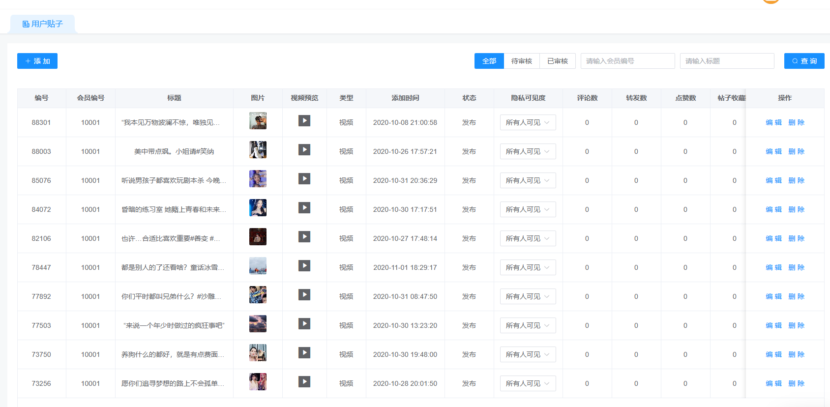 平台可以审核帖子内容,删除违规帖子操作。平台也可以通过这里发布帖子内容。