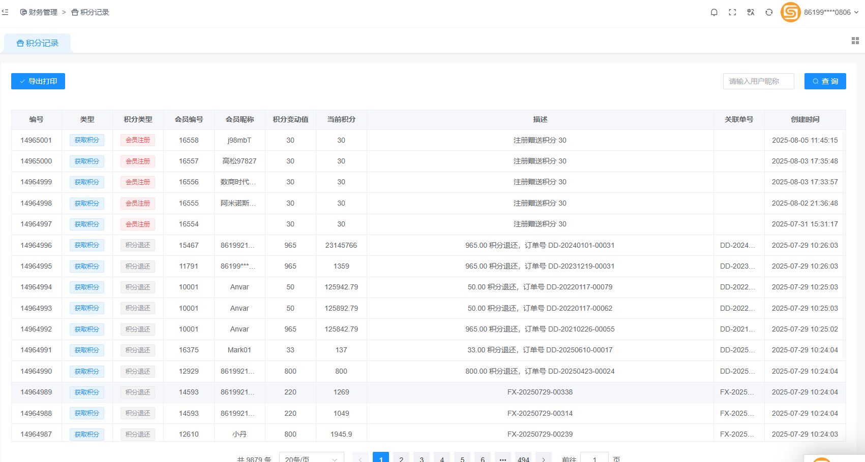 目录 搜索 第一章 前言授权协议免费技术支持商业技术支持第二章 系统安装运行环境要求安装php运行环境安装phpStudy使用宝塔集成环境安装安装SuteShop商城系统解压到网站根目录打开商城系统安装地址安装成功发布管理后台访问SuteShop商城系统第三章 系统平台管理中心运营统计运营首页用户统计店铺统计商品统计订单统计退单统计交易统计商城装修手机装修PC装修页面导航移动首页分类分类导航商品管理商品列表商品分类商品类型商品品牌规格管理辅助属性商品评价店铺管理店铺列表店铺等级店铺分类快递公司市场商圈订单管理在线订单咨询管理售后服务订单评价用户管理用户管理表单数据升级日志会员等级用户标签用户消息用户反馈营销管理单件折优惠券大转盘/砸金蛋拼团砍价加价购秒杀(限时折扣)折上折多件折A+B组合平台秒杀满减满返满即送多倍积分供需大厅采购大厅圈子社交板块管理用户帖子用户评论跑腿系统跑腿设置骑手管理跑腿订单财务管理积分记录发票管理支付渠道提现审核支付会员收支明细充值记录充值卡管理银行卡管理交易订单直播设置直播配置直播商品主播申请推广中心推广员推广订单佣金提现咨询管理文章分类文章管理标签管理文章评论国际化翻译设置货币汇率翻译制作语言系统商城设置站点设置上传设置终端设置接口设置通知设置社交设置IM设置SEO设置财务设置安全设置运营设置推广设置协议设置过滤词汇短信配置保障服务消息模版微信设置反馈类型反馈分类系统管理素材管理地区管理计划任务服务配置清理缓存角色管理系统用户操作日志错误日志第四章 商家管理中心运营统计运营首页商品统计交易统计商品管理添加商品商品列表翻译制作素材管理商品品牌标签管理商品咨询商品评价订单管理在线订单发票管理售后服务订单评价资金管理提现审核我要提现我的账户营销管理单件折优惠券大转盘/砸金蛋平台秒杀多倍积分拼团砍价满返加价购满即送满减折上折多件折秒杀(限时折扣)A+B组合直播设置主播申请直播商品批发市场我要分销店铺设置店铺配置店铺分类消费者保障服务店铺装修基础设置基础资料公司信息部门与员工辅助资料物流管理发货地址物流工具系统设置订单流程第五章 买家中心订单中心我的订单商品评价关注中心商品收藏店铺收藏我的足迹个人中心个人信息账号安全绑定授权收货地址客户服务退款退货商品咨询财产中心账户余额我的优惠券我的积分第六章 支付中心设置支付密码交易查询账户余额余额提现第七章 会员注册第八章 商家入驻第九章 门店管理中心门店订单第十章 供应商管理中心阿里云直播接口配置商城前期需要准备的资料微信支付配置支付宝支付配置域名如何备案苹果个人开发者账号申请发展粉丝常见问题资金流向如何获取小程序各页面链接如何清理浏览器缓存做直播(互动)平台要办什么证?公众号菜单栏如何直接跳转小程序SPU和SKU都是什么意思在线支付购物流程图货到付款购物流程图云版客户前期需要准备的资料拼团流程图如何获取腾讯视频真是播放地址及资源地址微信小程序常见拒绝情形如何更换域名,ip转域名针对随商移动商城系统Hbuilder快速上手发布教程iOS证书(.p12)和描述文件(.mobileprovision)申请http和https互转Android开发者证书的创建PayPal支付配置解决部分服务器自动翻译不起作用Facebook配置互联登陆随商商城采集助手宝塔面板生成更换ssl证书Google配置互联登陆阿里云OSS配置如何安装FFmpeg on CentOS系统缓存切换教程银联在线支付申请配置流程Hbuilder打包h5教程Hbuilder打包app教程小程序配置教程Hbuilder打包微信小程序教程小程序发布审核数据库结构同步域名SSL证书修复,解决小程序网络异常问题地址库导入教程开启积分商品Google Play开发者账号注册腾讯云COS对象存储配置阿里云免费SSL证书申请商品分类导入教程PC VUE前端代码运行&发布定制项目转移教程微信开放平台账号注册及认证百度翻译视频文件存储到阿里云OSS视频文件存储(通过自营店铺图库管理)本地开发环境部署管理后台打包发布阿里云短信开通及备案 暂无相关搜索结果! 本文档使用 MinDoc 发布 积分记录 积分记录 平台会员的所有积分变化记录可以通过搜索查询具体会员的积分变动 文档更新时间: 2025-08-07 15:59 作者:随商信息技术(上海)有限公司