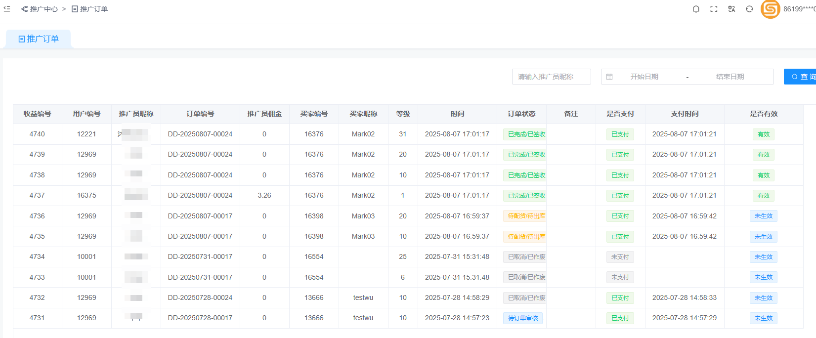 推广订单是推广员的粉丝销售产生收益的订单,这里可以查看推广员得到佣金的具体订单明细。
