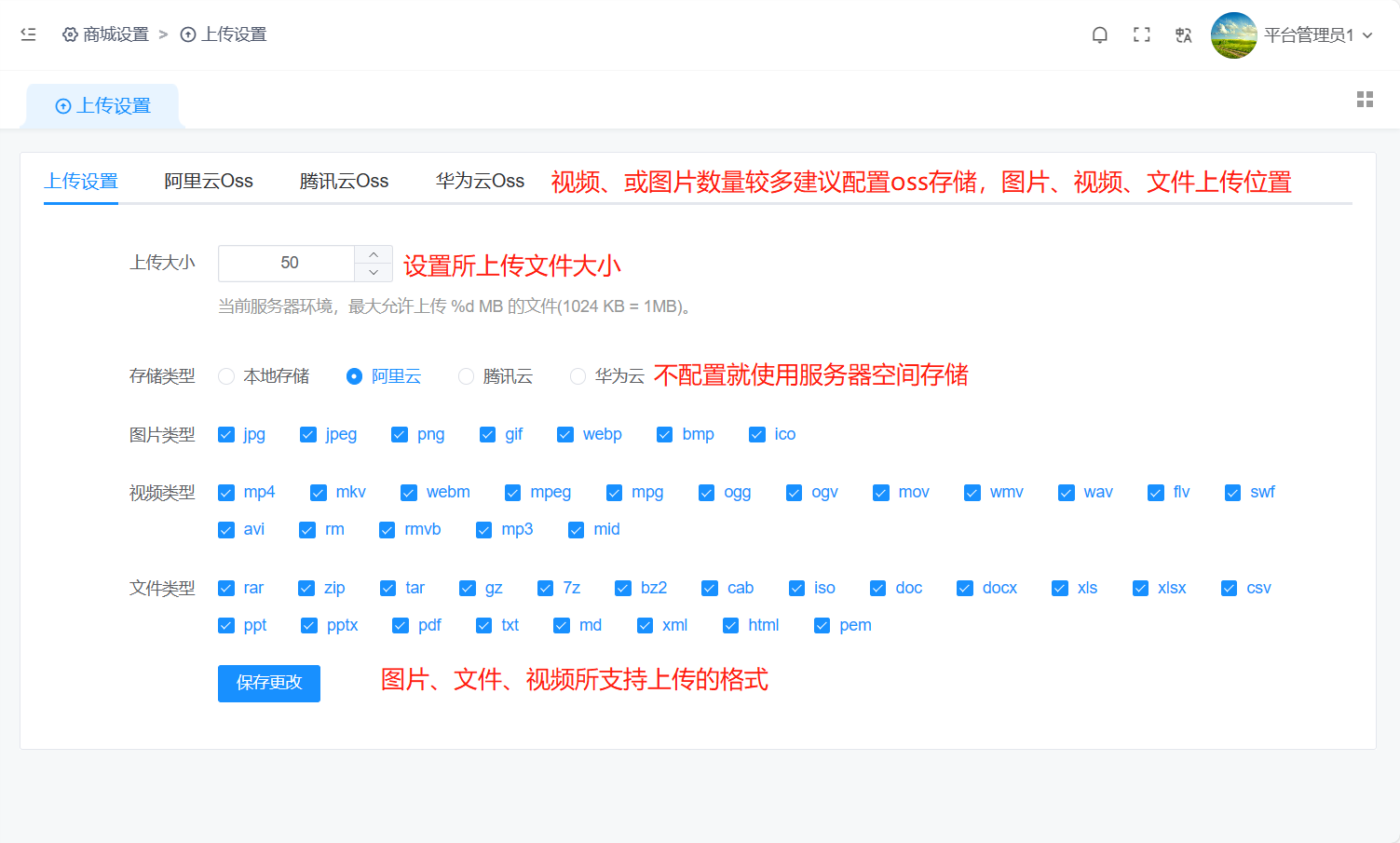 允许文件大小取决于PHP设置。先设置PHP上传限制。如果使用宝塔默认安装之后是50M。再设置图片文件大小。大部分上传图片失败问题都是图片大小超过了这里的限制。解决方法是压缩图片。