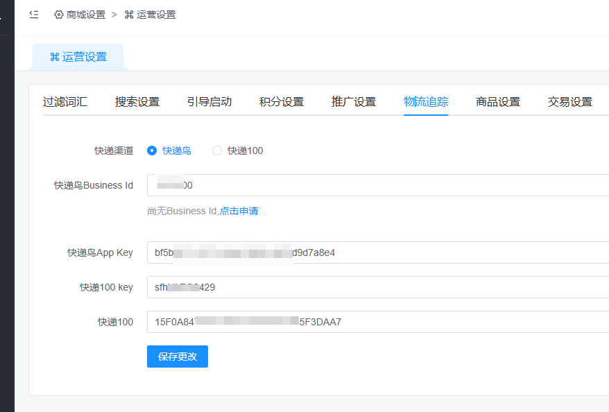 快递物流查询设置: