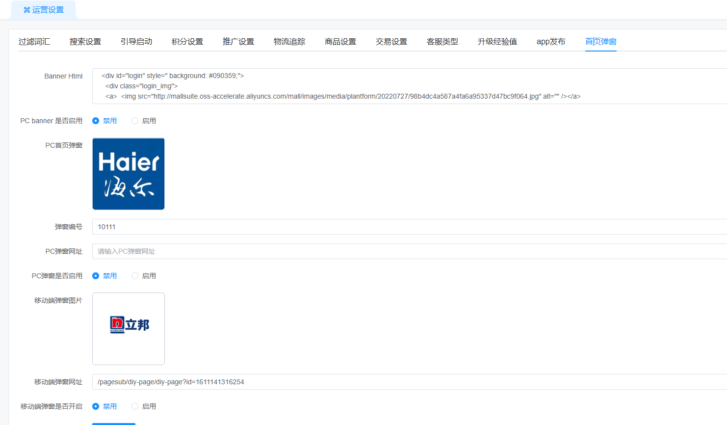 PC banner 是否启用:设置的是PC首页顶部的横幅弹窗