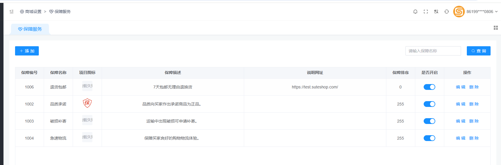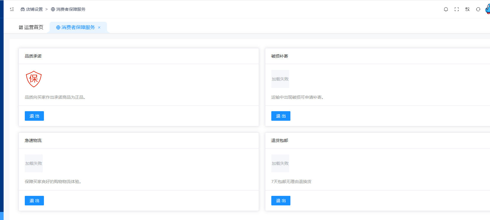 商家后台:店铺设置–消费者保障服务 选择要加入的项,点加入。