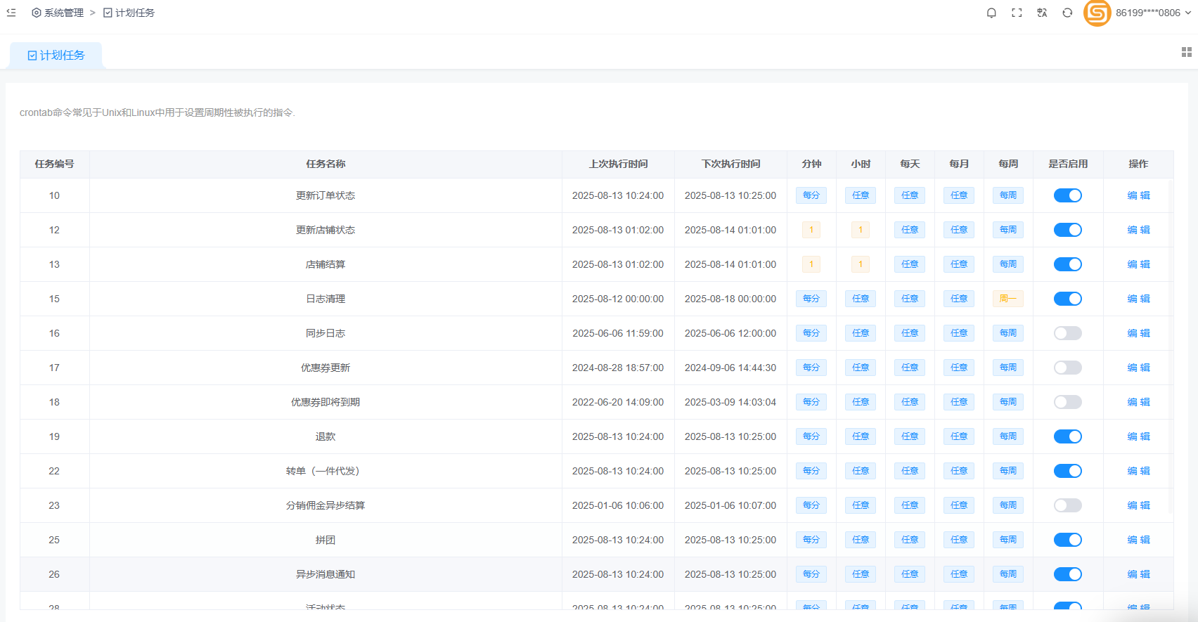 服务器上触发脚本任务设置之后还需要在商城后台这里添加具体执行哪个文件,设置执行时间。已经设置执行的时间的会全部自动执行。
