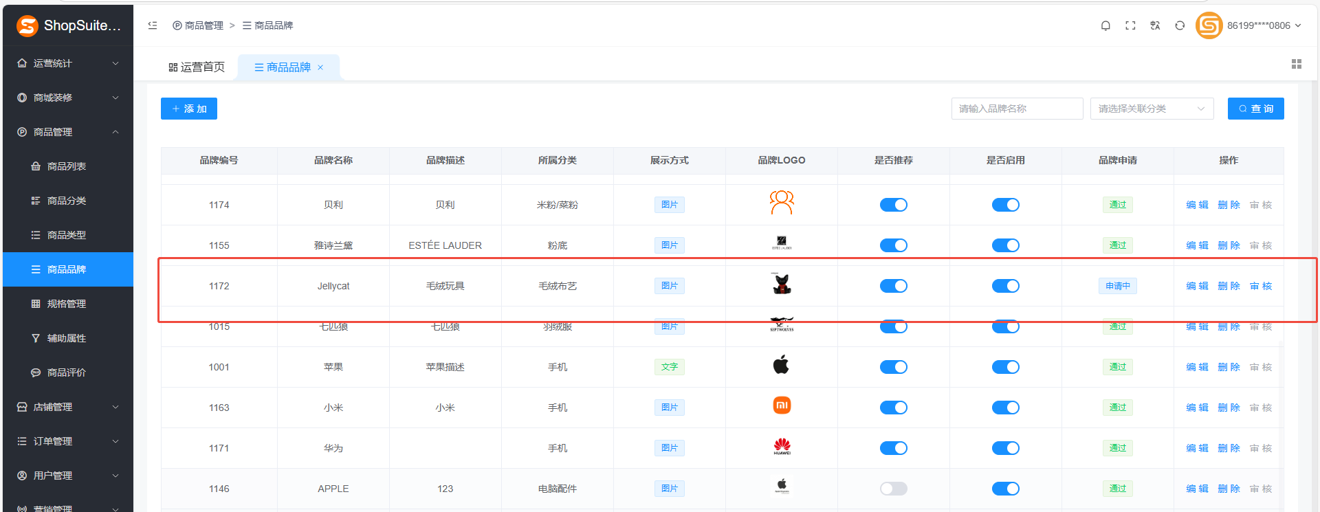 平台审核位置 平台管理后台–商品管理–商品品牌