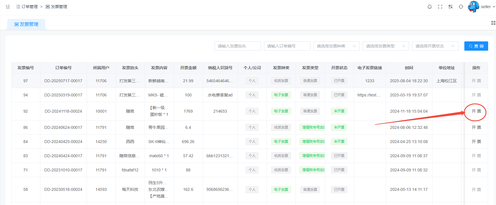卖家线下开完票,点击开票填写电子发票地址,用户在个人中心我的发票 的地方即可查看下载发票