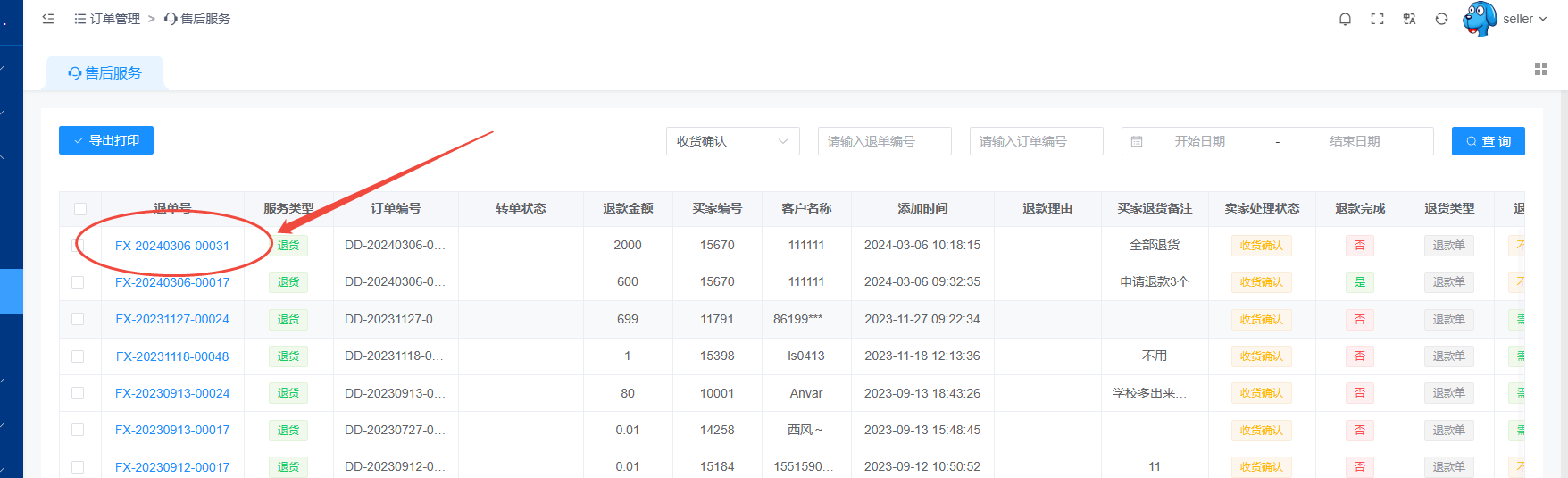 商家在这里处理退换货申请
