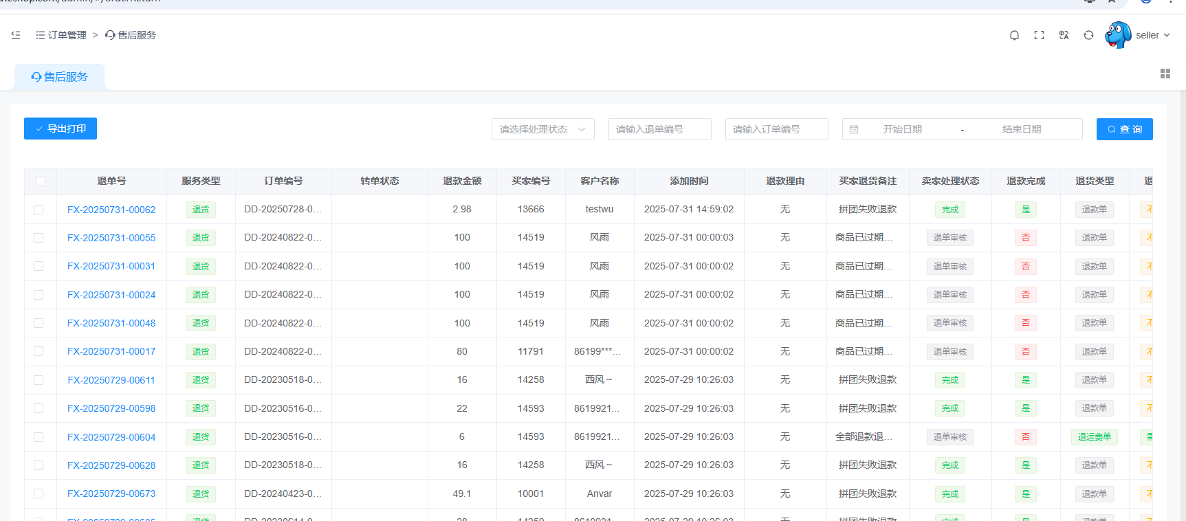 用户申请退换货及拼团失败自动退款的都会在此处显示