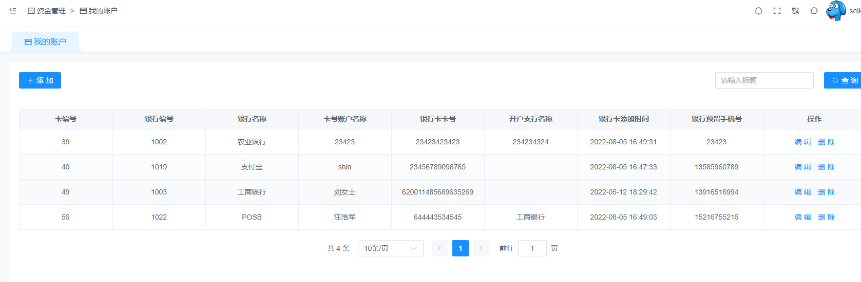 商家管理提现账户的地方