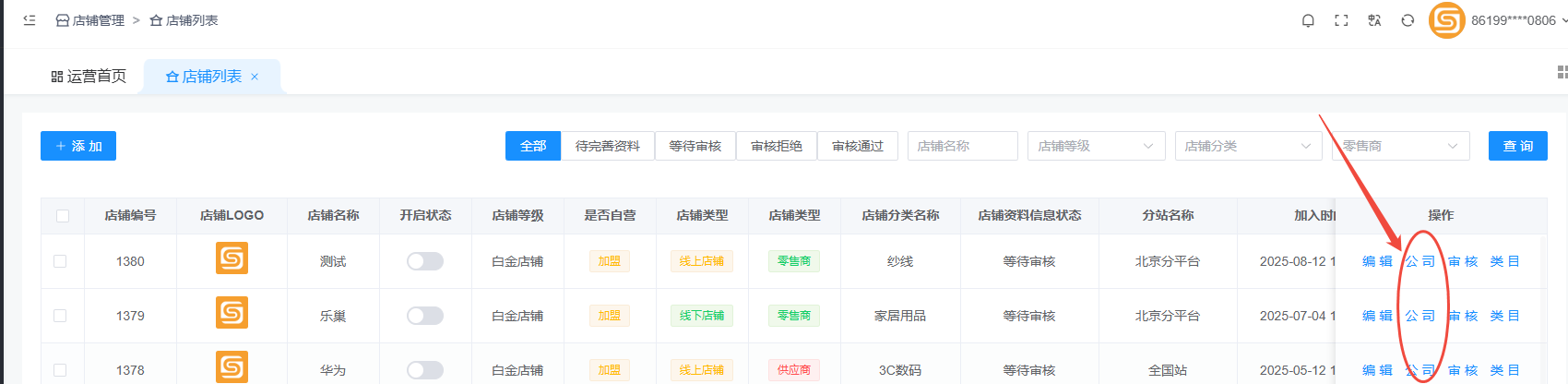 平台查看位置:平台管理后台:店铺管理–店铺列表